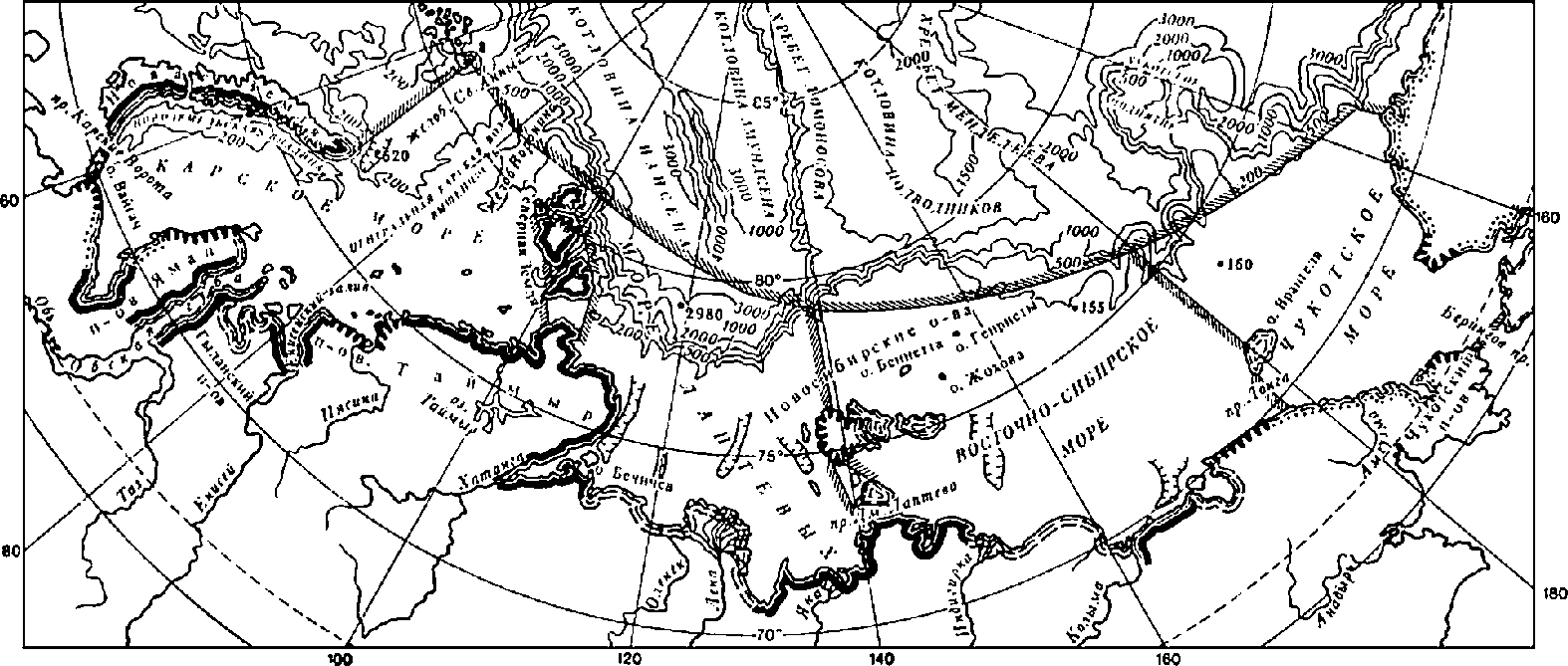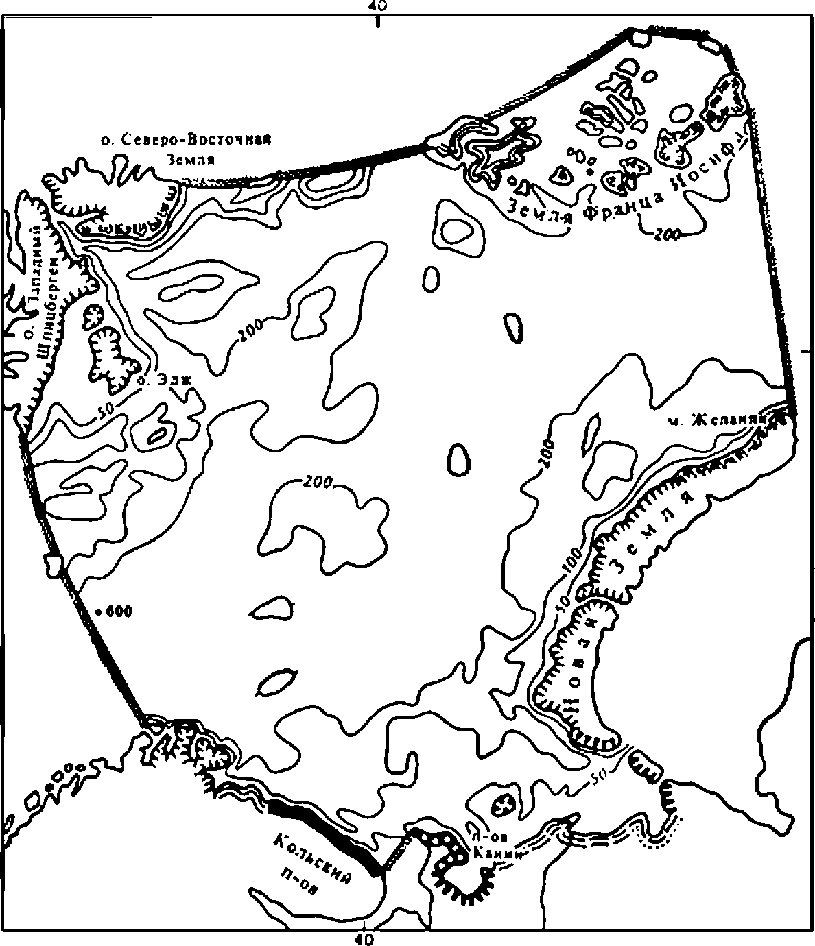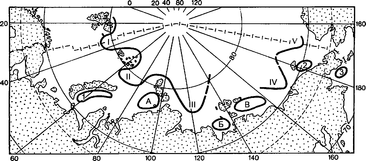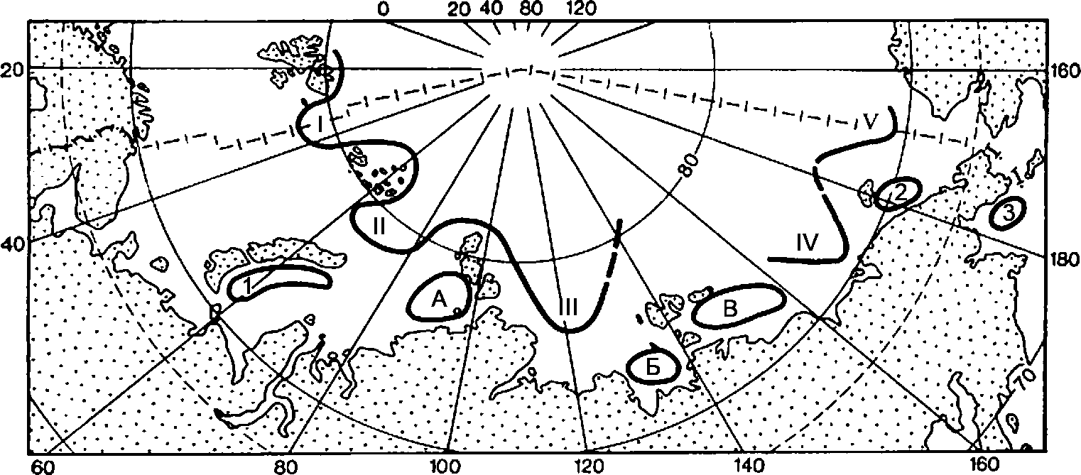 г) минимальные расстояния в км от границы дрейфующего льда до акватории месторождения, возможные один раз в n лет, для различных периодов повторяемости;