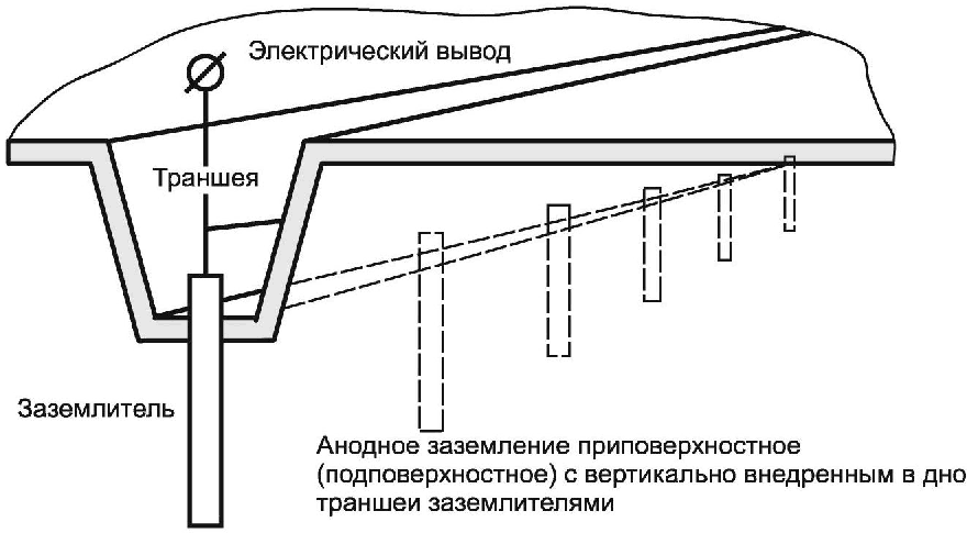 01-10-11 заземление на корпус: Формирование замкнутой цепи для отвода аномально высокого напряжения и опасных блуждающих и иных токов с наружной поверхности (корпуса) токопроводящих конструкций в окружающую электролитическую среду.