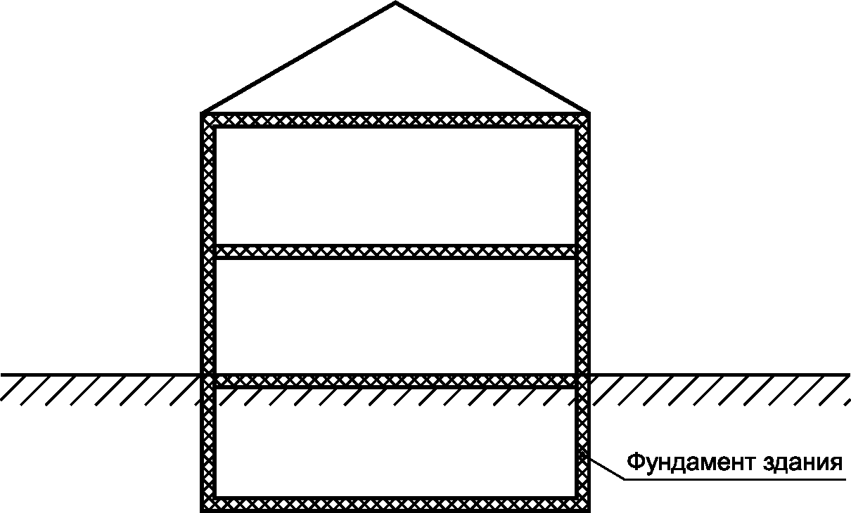 01-10-08 заглубленный в грунт фундаментный заземлитель (soil-embedded foundation earth electrode): Заземляющий электрод, как правило, в виде замкнутого контура, заглубленный в грунт под фундаментом здания [МЭК 60050-826:2004, статья 826-13-08, Изм.,