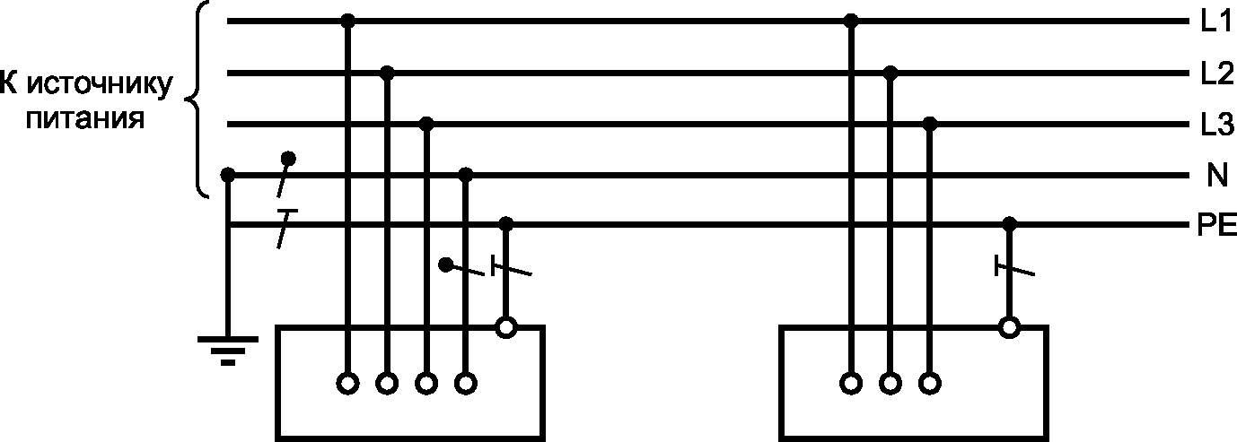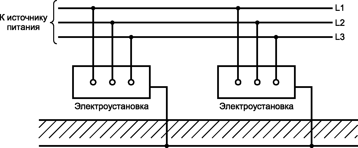 Примечание - В электрических установках защитный заземляющий проводник также имеет обозначение PE.