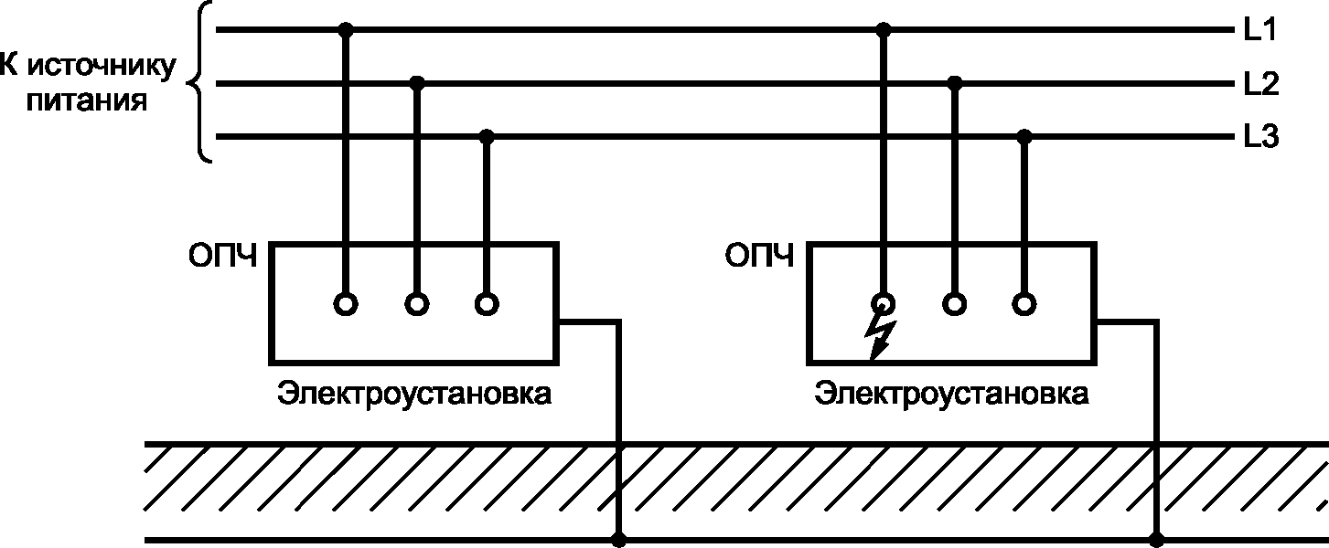2 Возникновение проводящей цепи между проводником, который может быть не заземлен по причинам, связанным с рабочим режимом электроустановки, и землей также рассматривается как замыкание на землю.