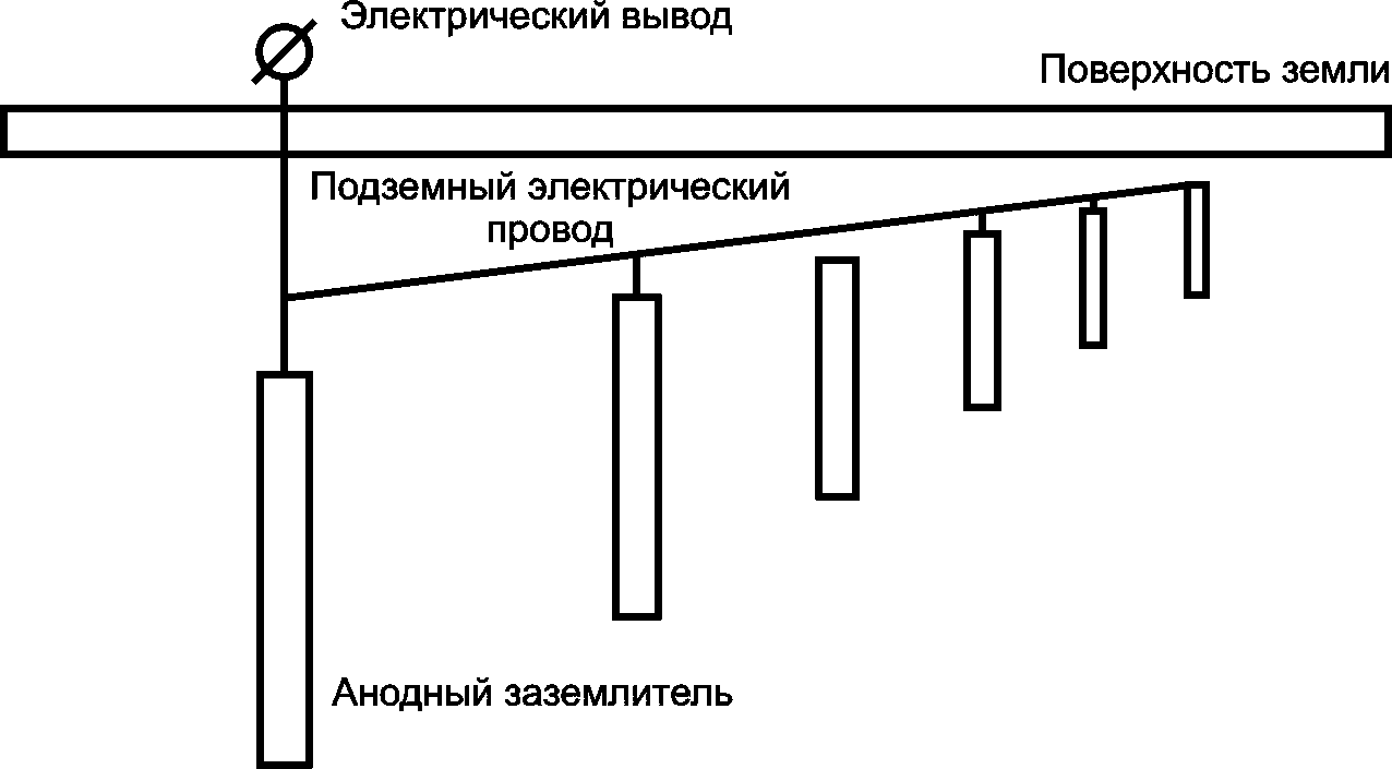 01-10-16 заземляющий проводник в анодном заземлении: Изолированный проводник, обеспечивающий в заземляющем устройстве электрическую связь средства электрохимической защиты от коррозии с токопроводящей конструкцией (на клемме "минус") и рабочим заземлением (на клемме "плюс").