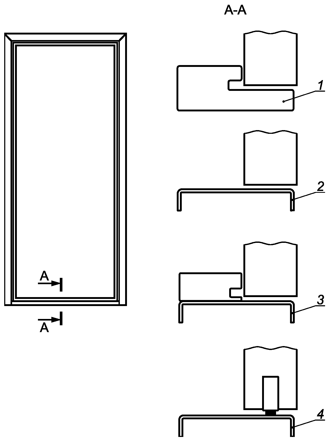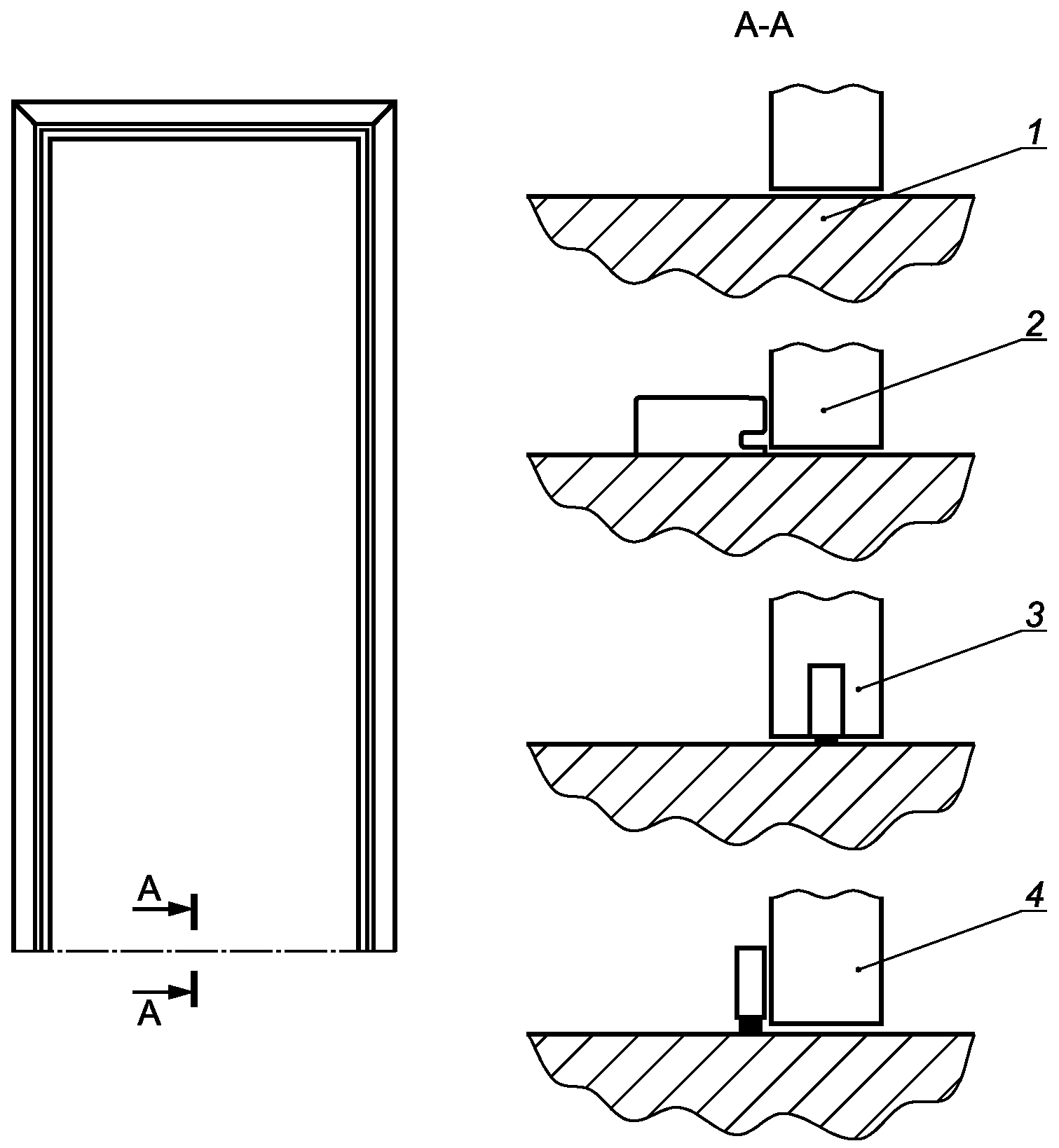 3.10 порог с притвором: Нижняя часть коробки замкнутого типа, выполненная из профиля, конструкция которого обеспечивает примыкание к нему полотна по всей его ширине.