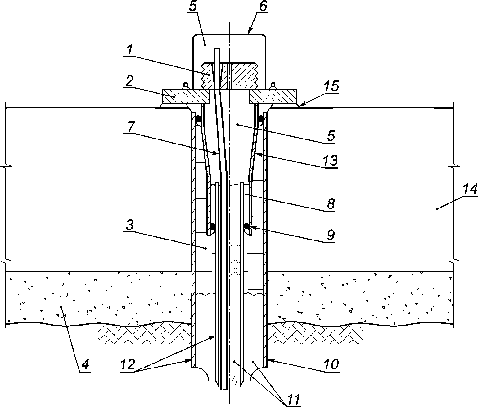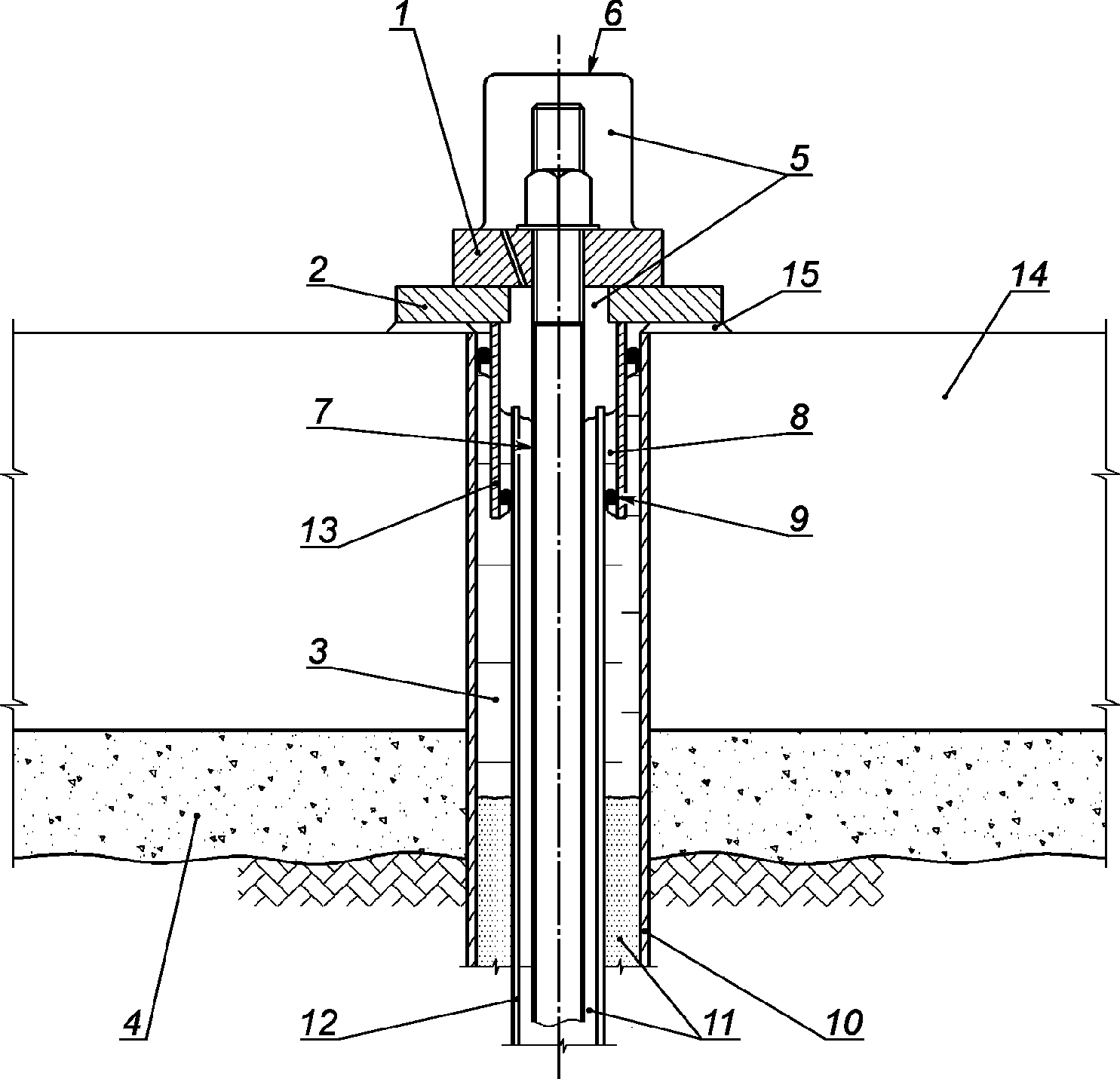 11 - защитная труба; 12 - растягивающий элемент (анкерная