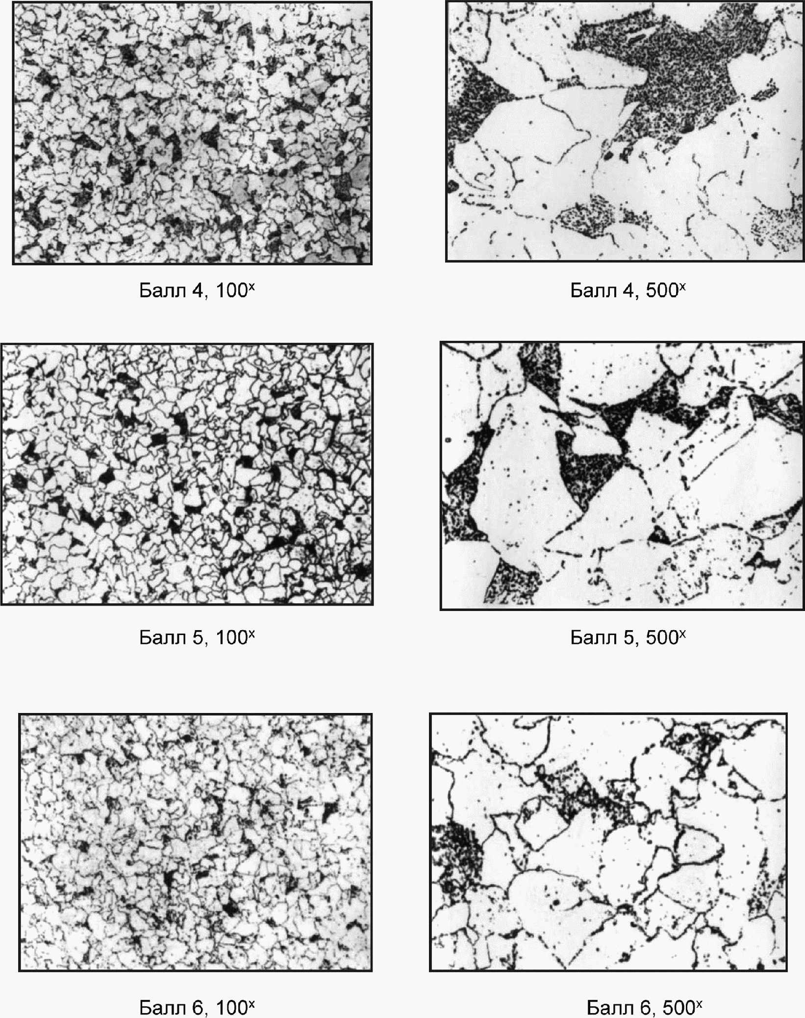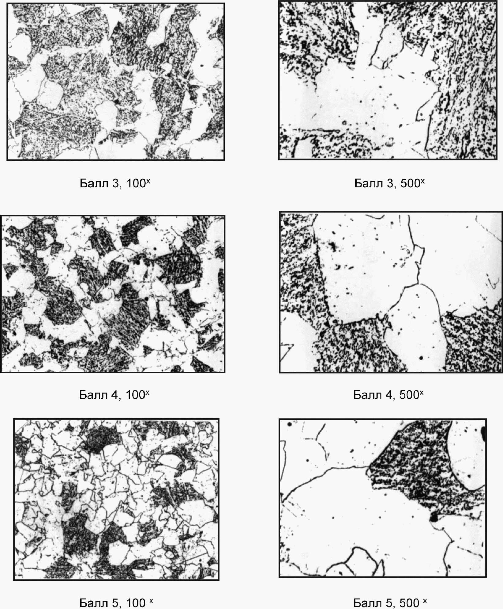 3 | Прерывистые полосы феррита и перлита, расположенные равномерно по всему полю зрения, и не более пяти сплошных полос феррита, проходящих через все поле зрения |