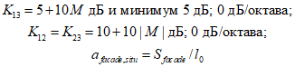 <***> Данное отношение, аналогичное коэффициенту звукопроницаемости (см., например, "Борьба с шумом на производстве" Справочник под общ. ред. Е.Я. Юдина - М.: Машиностроение, 1985), можно назвать коэффициентом фактической звукопроницаемости.