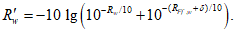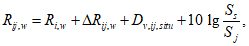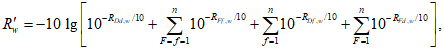 R', дБ: Величина, равная со знаком минус десятикратному десятичному логарифму отношения суммарной звуковой мощности