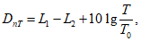 3.1.2 стандартизованная разность уровней (standardized level difference) DnT, дБ: Разность средних уровней звукового давления шума в двух помещениях, созданного расположенными в одном из помещений одним или несколькими источниками шума, отнесенная ко времени реверберации приемного помещения и рассчитываемая по формуле
