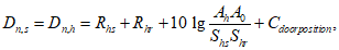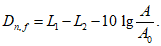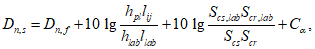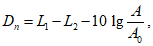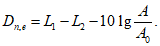 3.1.3 приведенная разность уровней (normalized level difference) Dn, дБ: Разность средних уровней звукового давления шума в двух помещениях, созданного расположенными в одном из помещений одним или несколькими источниками шума, соответствующая эквивалентной площади звукопоглощения приемного помещения и рассчитываемая по формуле