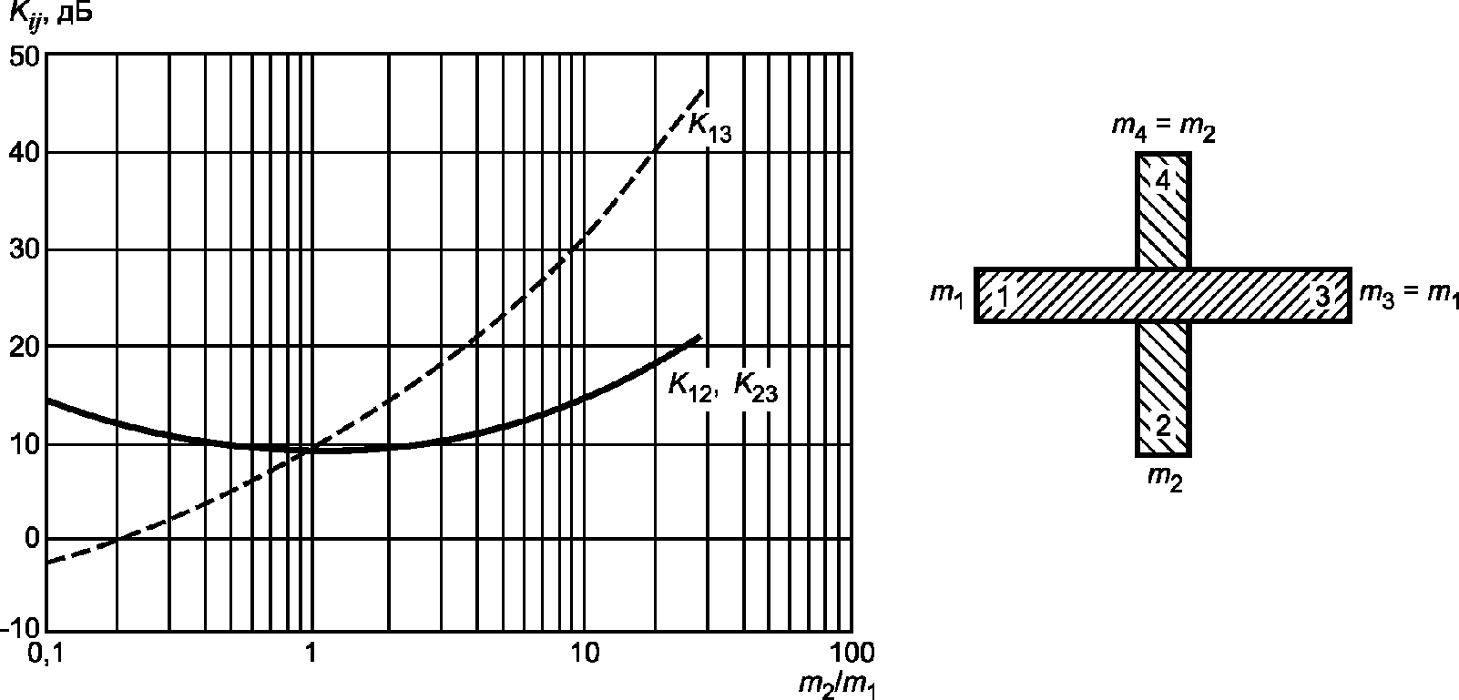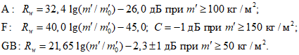 m', кг/м2 | | | KFf, дБ | KFd, дБ | KDf, дБ |