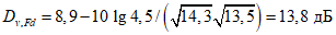 | Dv,Ff = 12,4 - 10 lg 4,5/13,5 = 17,2 дБ |