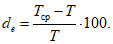Допустимое процентное отклонение de средней, измеренной печными термопарами, температуры от значений температуры T, вычисленной по формуле (2), определяют следующим образом: