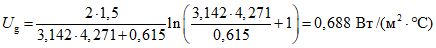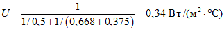 U = 0,27 - 2·0,033/3,789 = 0,25 Вт/(м2·°C).