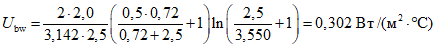 U' = 66,4/(75 + 2,5·35) = 0,41 Вт/(м2·°C).