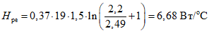 Hg = AUbf + zPUbw = 75·0,533 + 2,5·35·0,302 = 66,4 Вт/°C;