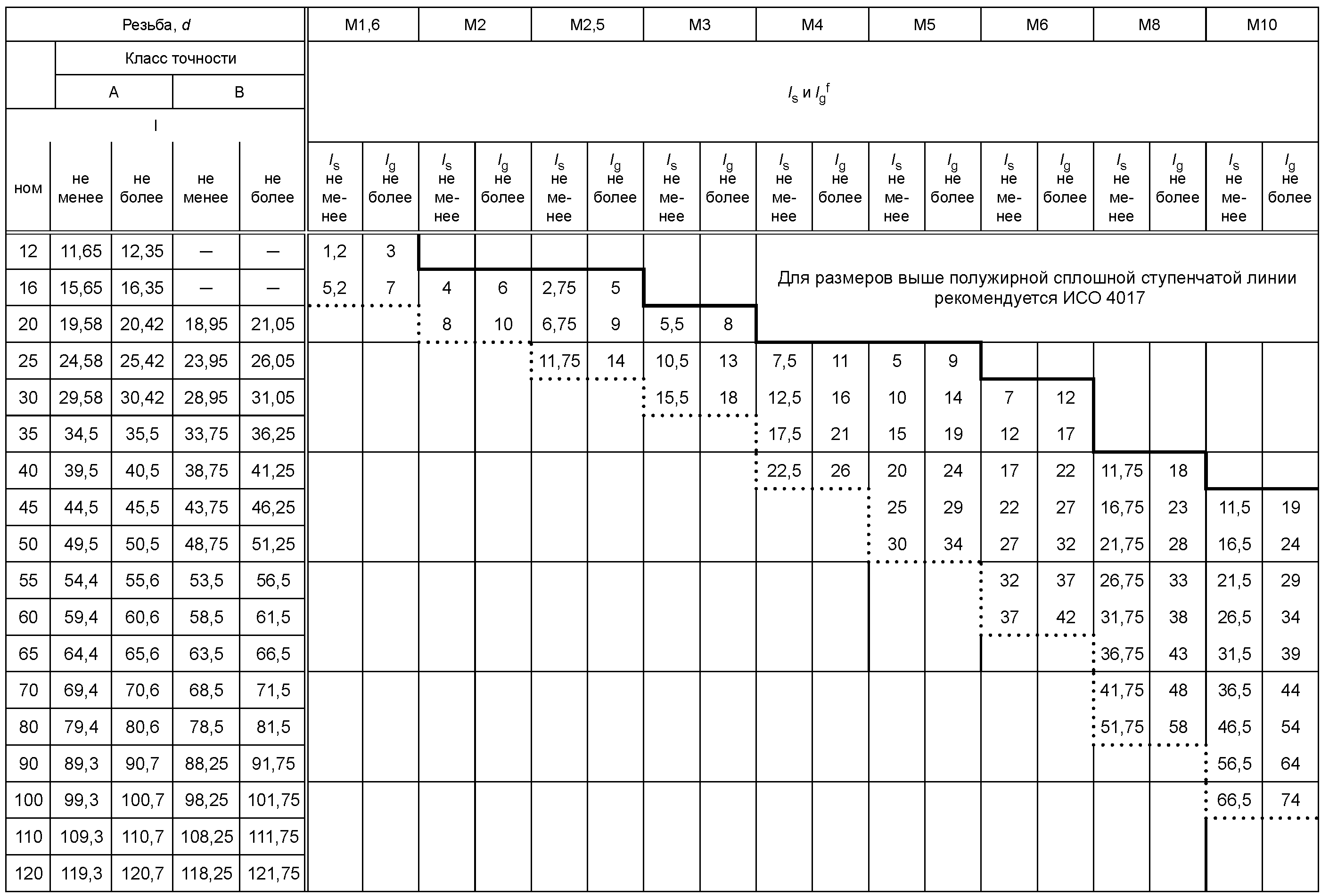 Настоящий стандарт устанавливает характеристики болтов с шестигранной головкой с резьбой от М1,6 до М64 включительно, класса точности A для резьбы от М1,6 до М24 и номинальных длин до 10d или 150 мм включительно, выбирая меньшее значение, и класса точности B для резьбы свыше М24 или номинальных длин свыше 10d или 150 мм, выбирая меньшее значение.