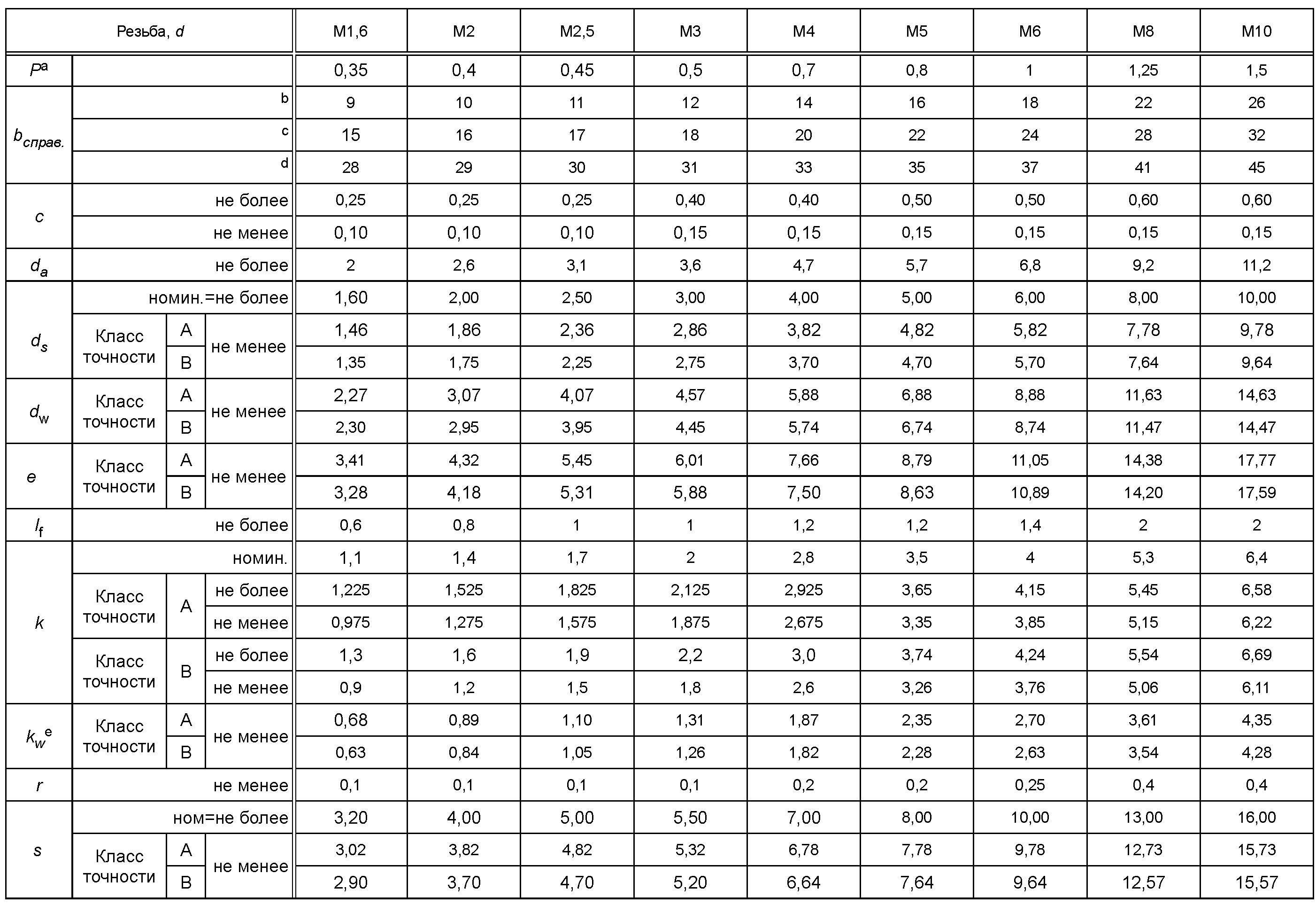 Допуски | Класс точности | Для d <= 24 мм и l <= 10d или 150 мм <b>: A Для d > 24 мм или l > 10d или 150 мм <b>: B |