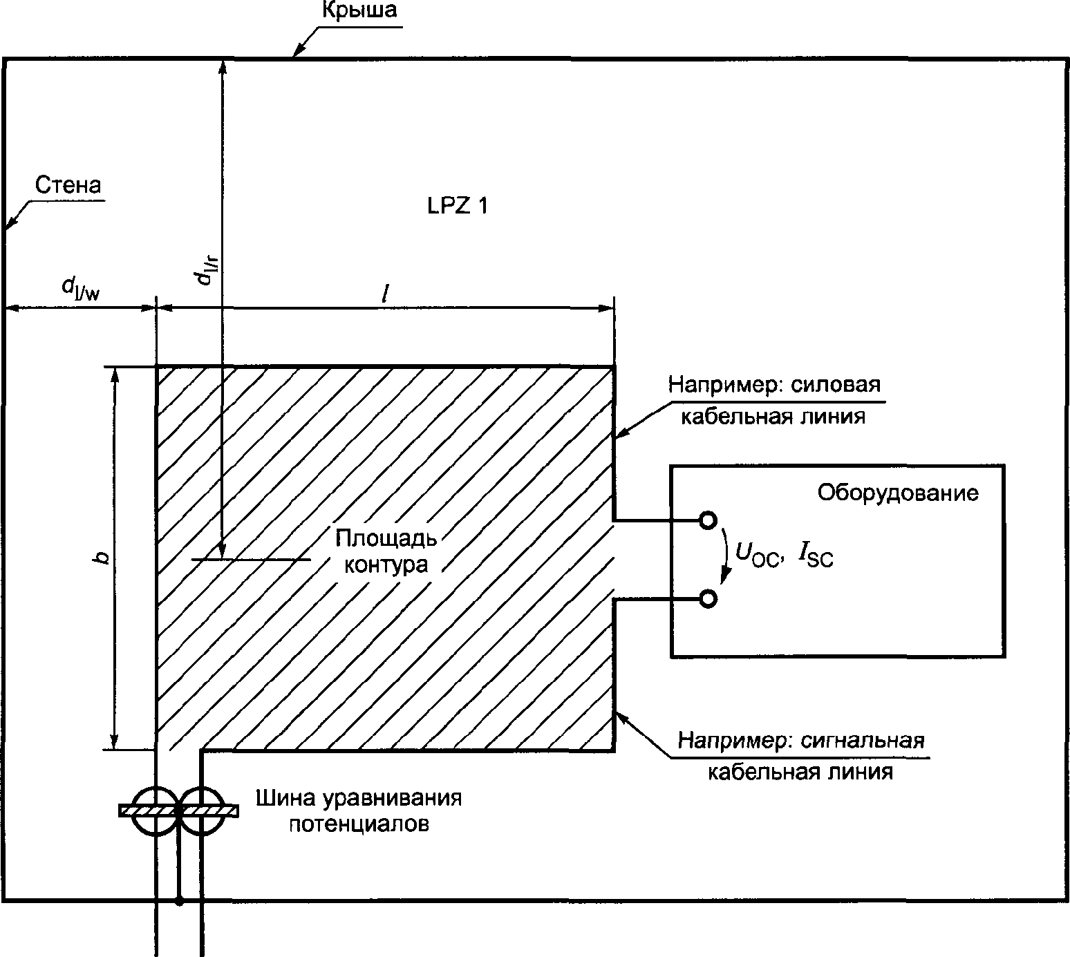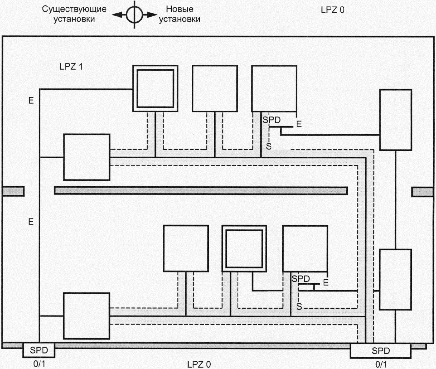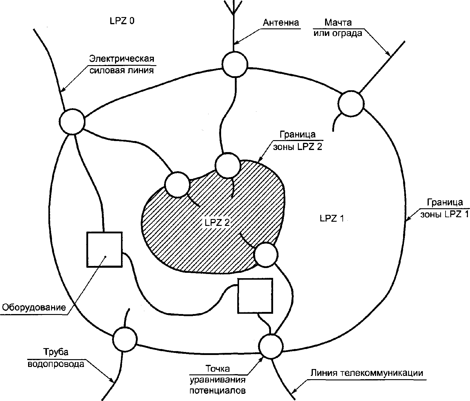 Примечание - Эта система LPS состоит из системы внешней защиты от молнии и системы внутренней защиты от молнии.
