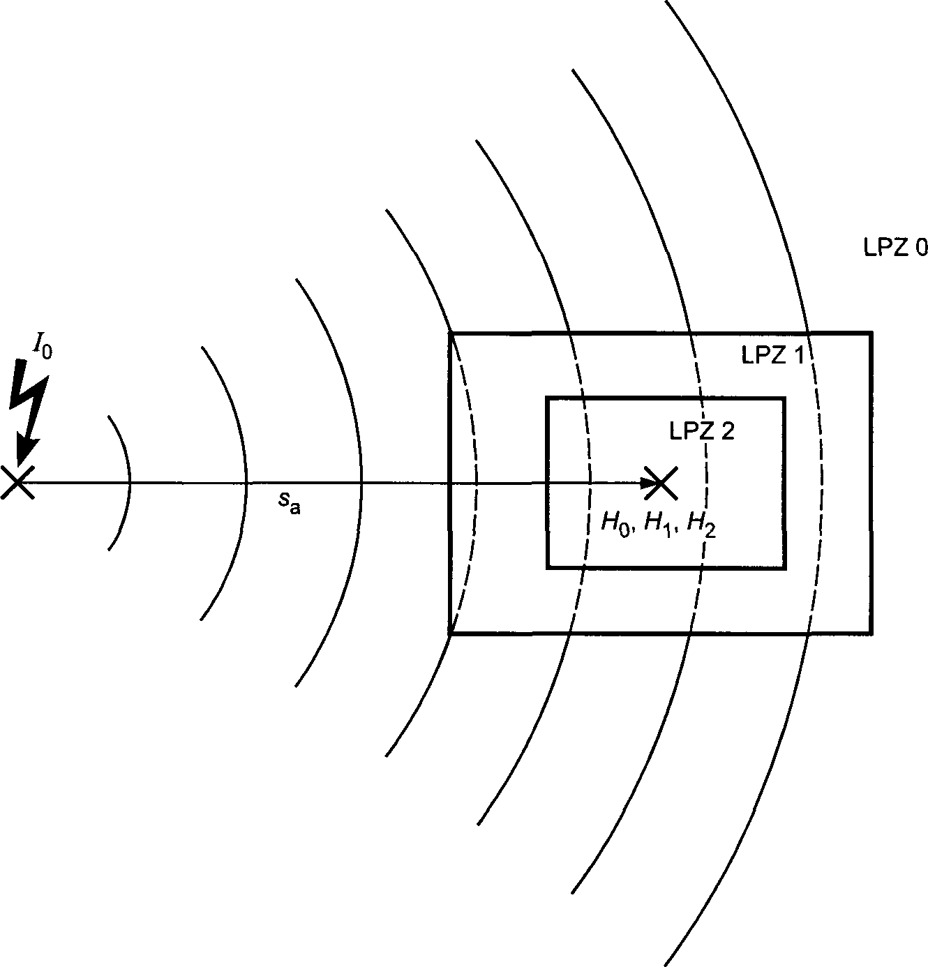 Примечание - Границы зоны защиты от молнии не обязательно являются физическими границами (например, стены, пол и потолок).