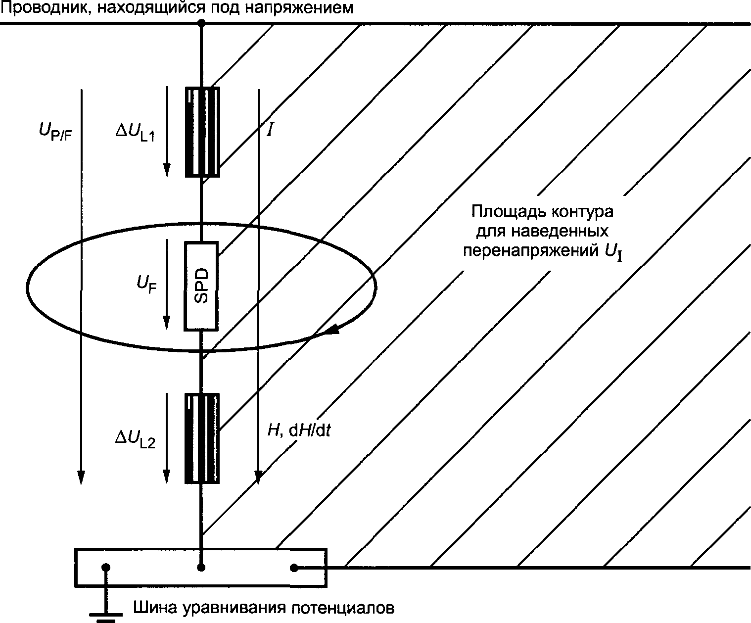 a) кондуктивных (проводных) и индуктивных (наведенных) перенапряжений, переданных на оборудование по присоединенным к нему проводникам;