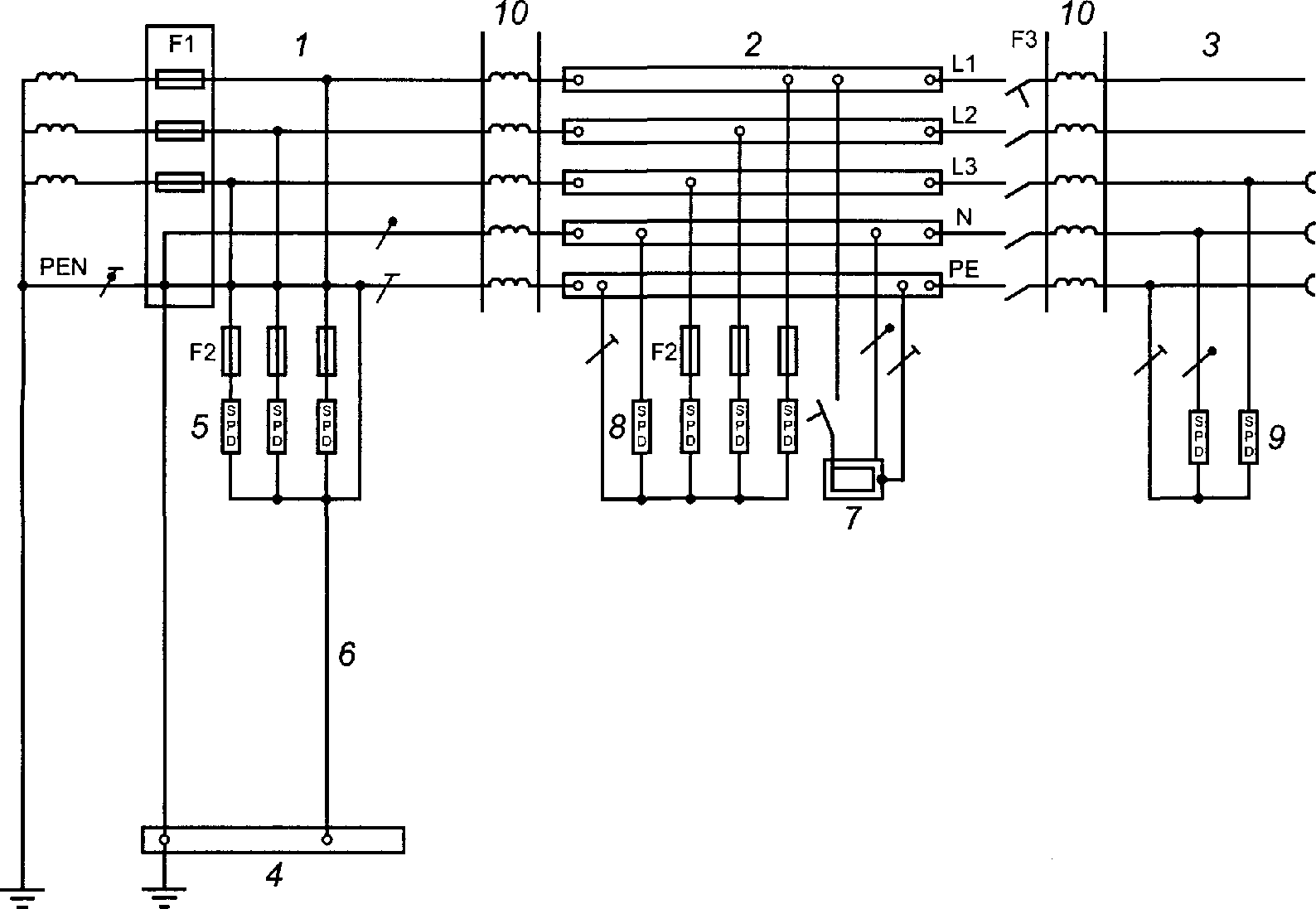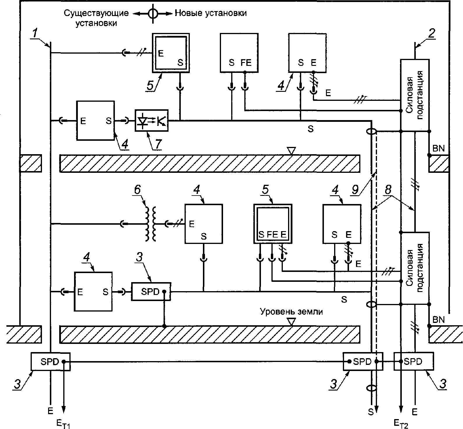 6 - заземляющий проводник устройства защиты от перенапряжений;