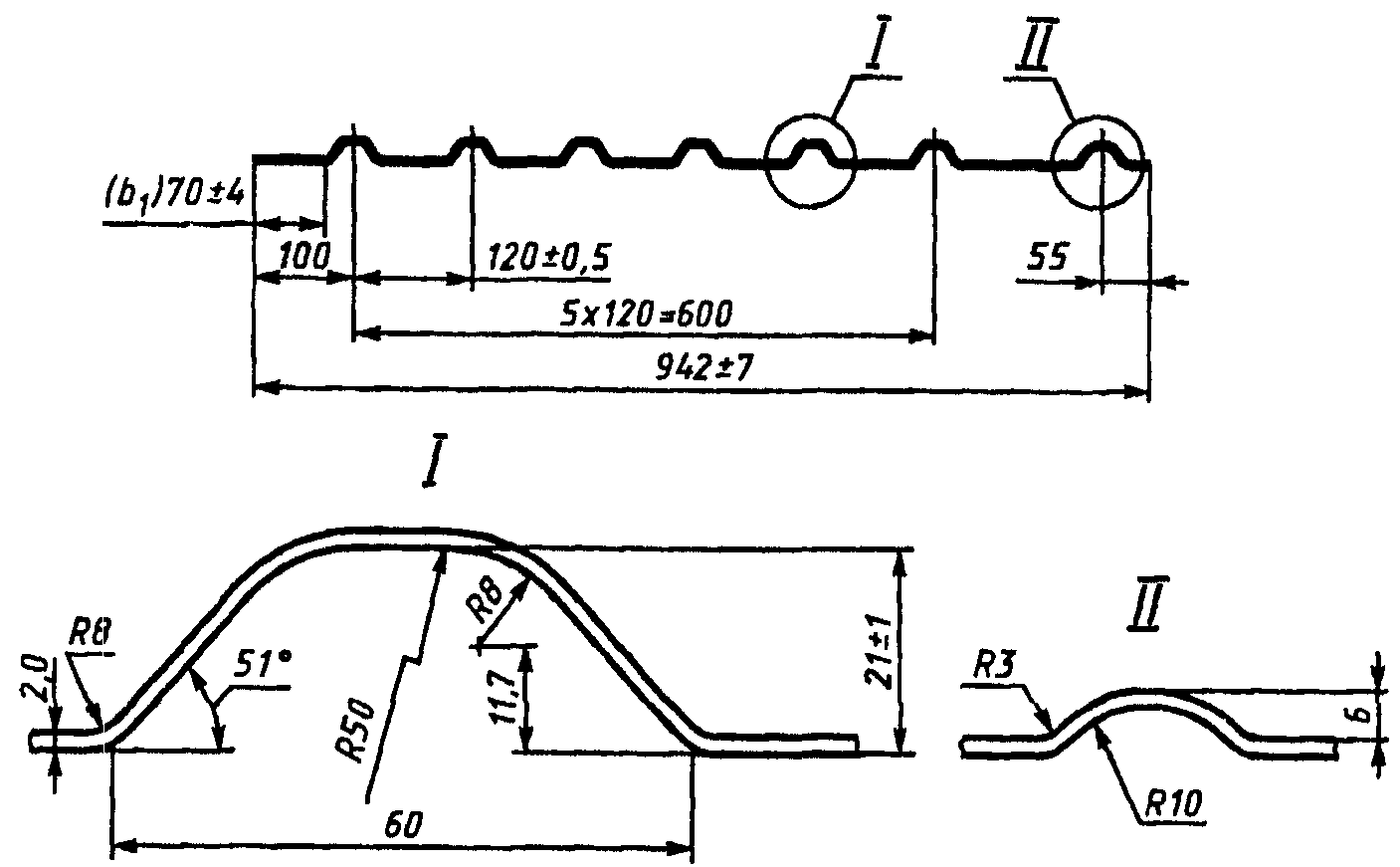 Рисунок 3. Профиль 942 х 21 х 2,0, ГЛ4-221;