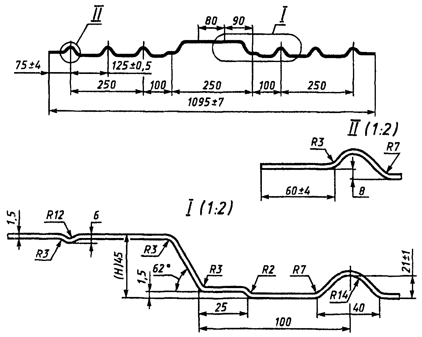 4.1. Холодногнутые гофрированные профили по форме, размерам, предельным отклонениям по размерам должны соответствовать нормам, приведенным на рисунках 1 -
