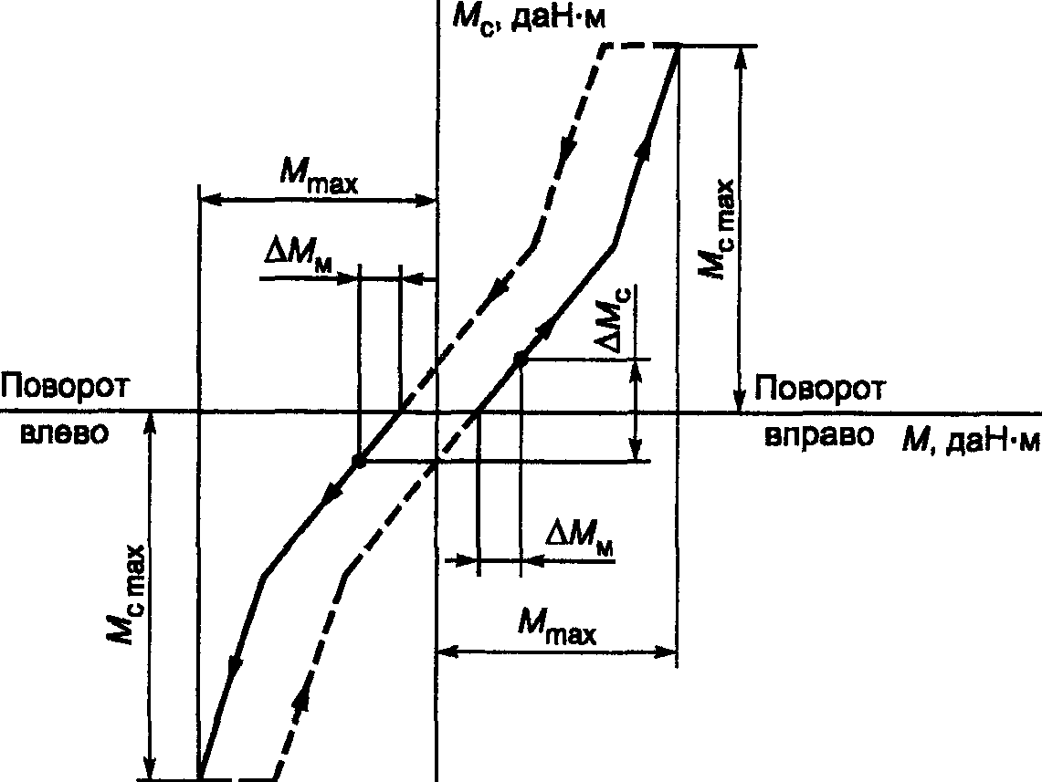 на выходном звене рулевого механизма от момента M на рулевом валу <*>;