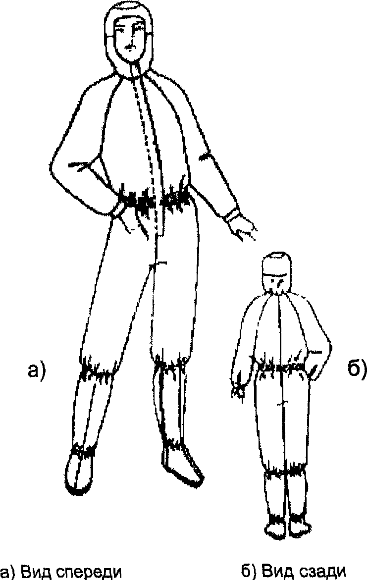 Примечание. Допускается использовать модель комбинезона с воротником-стойкой, которая применяется с отдельным шлемом с пелериной.