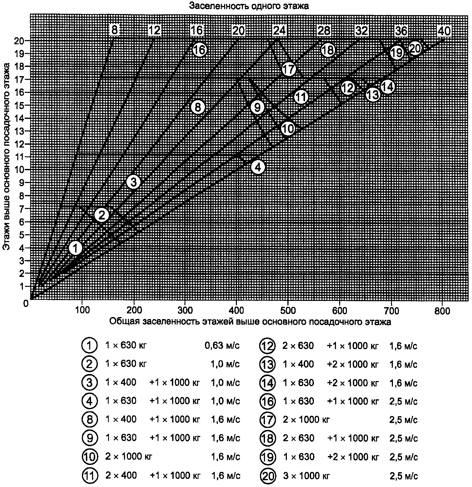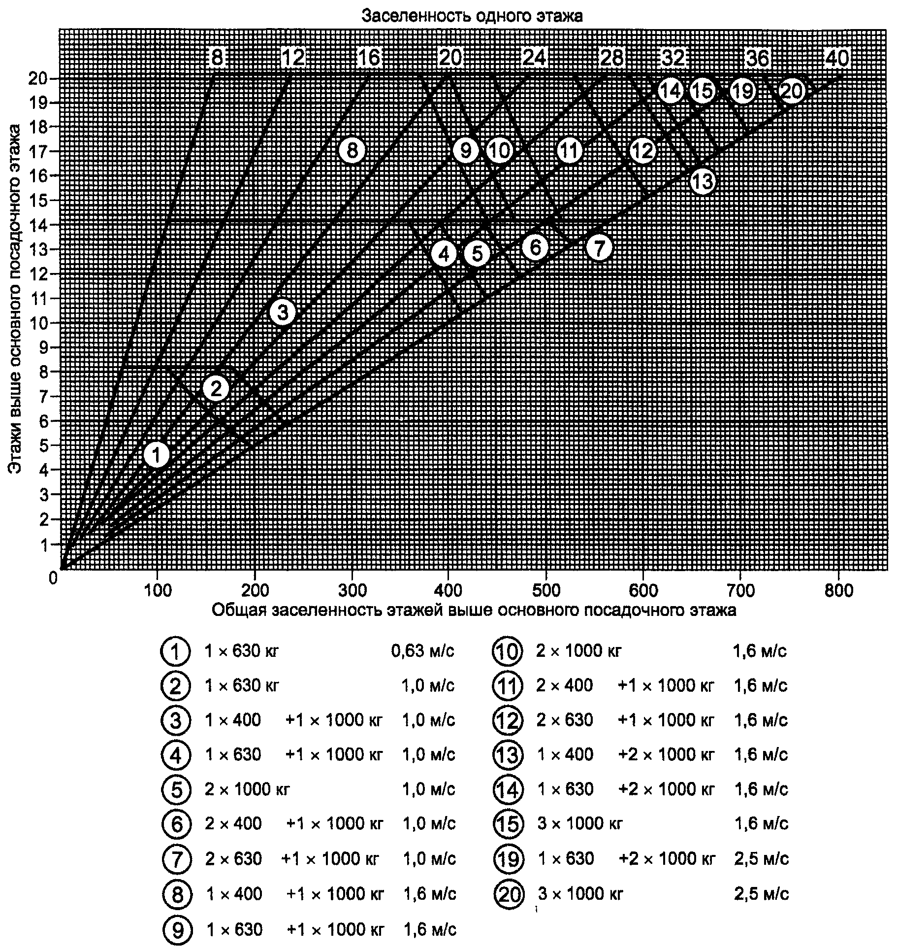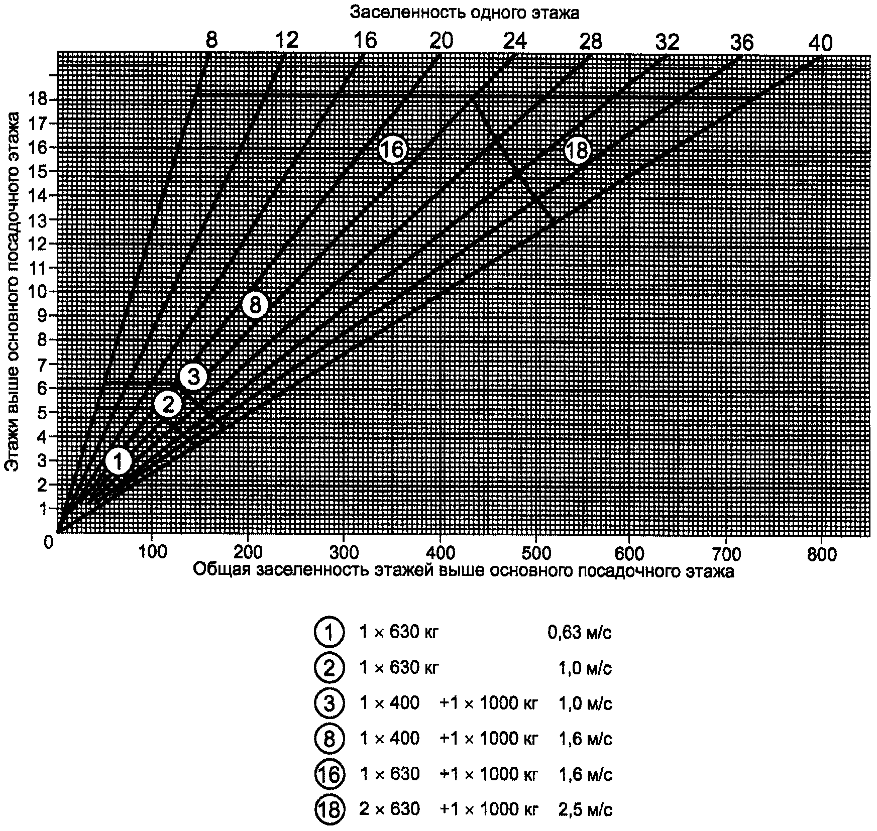 Вариант определения числа и параметров лифтов при помощи диаграмм приведен в Приложении Б.