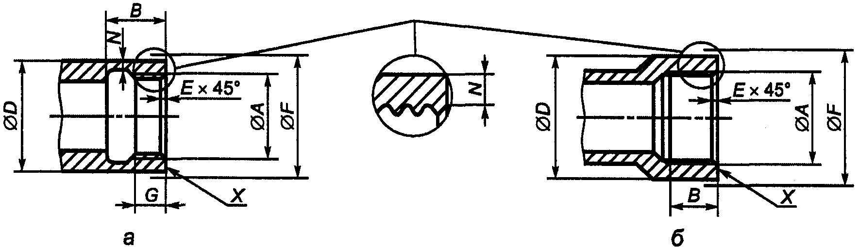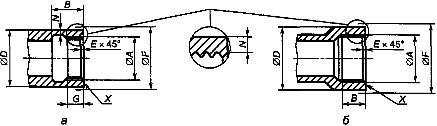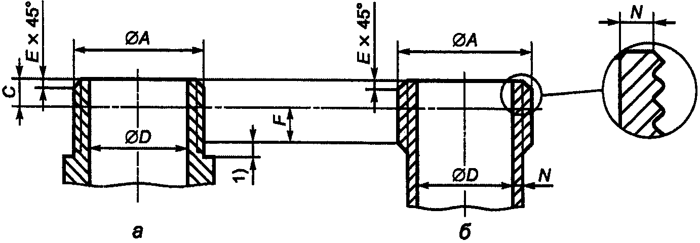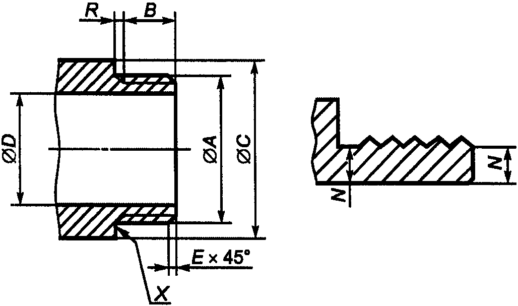 │фаски E снятие первого витка резьбы. │