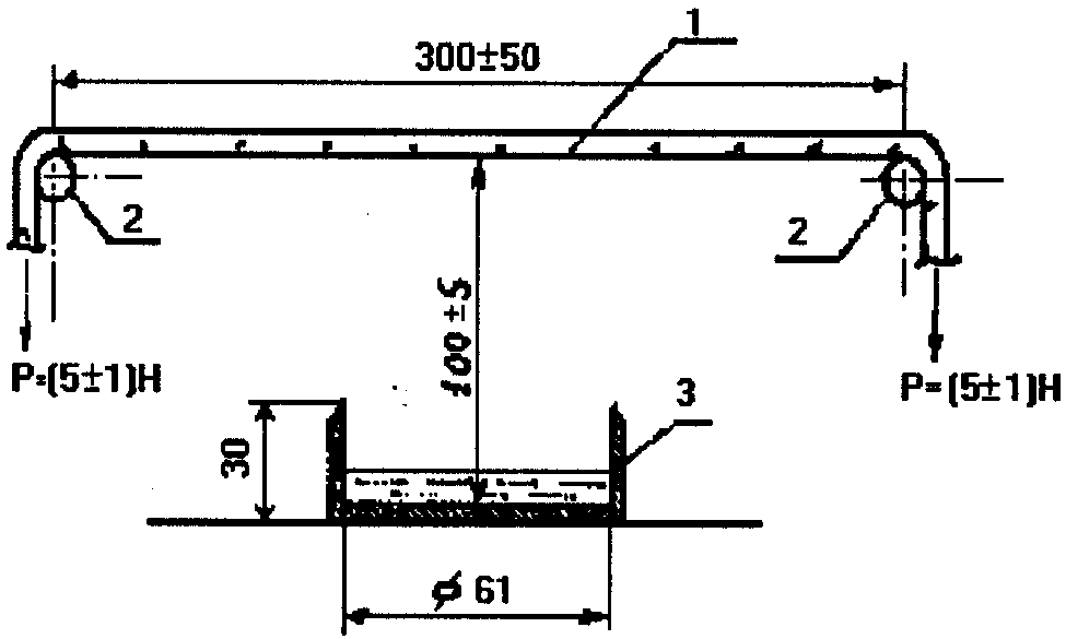 в) не позднее чем через 5 с после прогрева накладывают стержень посередине образца перпендикулярно его продольному направлению;