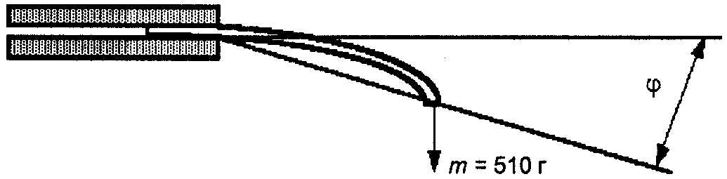 рисунке 5, а, таким образом, чтобы один конец образца находился в точке A, а другой в точке B. Груз P массой (0,023 +/- 0,001) кг крепят к концу образца в точке B.