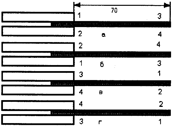 Образец укладывают на горизонтальной и плоской поверхности в соответствии со схемой, изображенной на