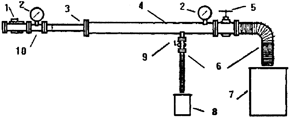 7.7. Установка состоит из основного (см. рисунок 1, позиция 4) и дополнительного (см. рисунок 1, позиция 10) металлических трубопроводов с отводами, высоконапорного генератора (см. рисунок 1, позиция 3), манометров (см. рисунок 1, позиция 2), шарового крана (см. рисунок 1, позиция 9), задвижки (см. рисунок 1, позиция 5), расходомера (см. рисунок 1, позиция 1), эластичных рукавов (см. рисунок 1, позиция 6), емкостей объемом 10 л (см. рисунок 1, позиция 8) и не менее 2000 л (см. рисунок 1, позиция 7).