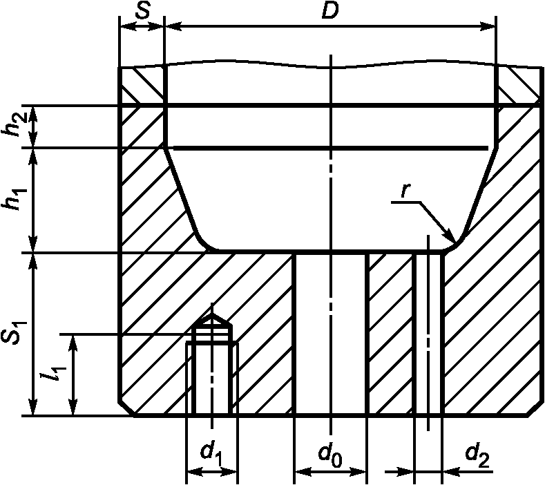 - диаметр центрального отверстия в днищах или крышках, мм;