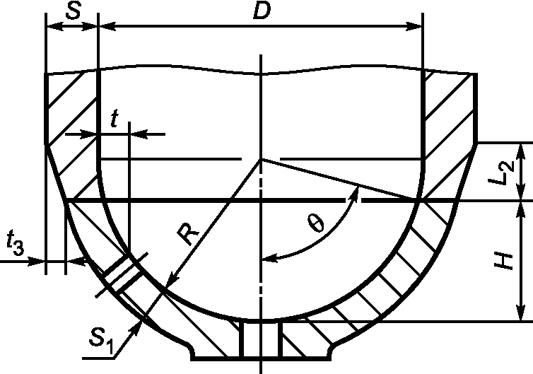 H - высота выпуклой части днища по внутренней поверхности без учета цилиндрической части, мм;