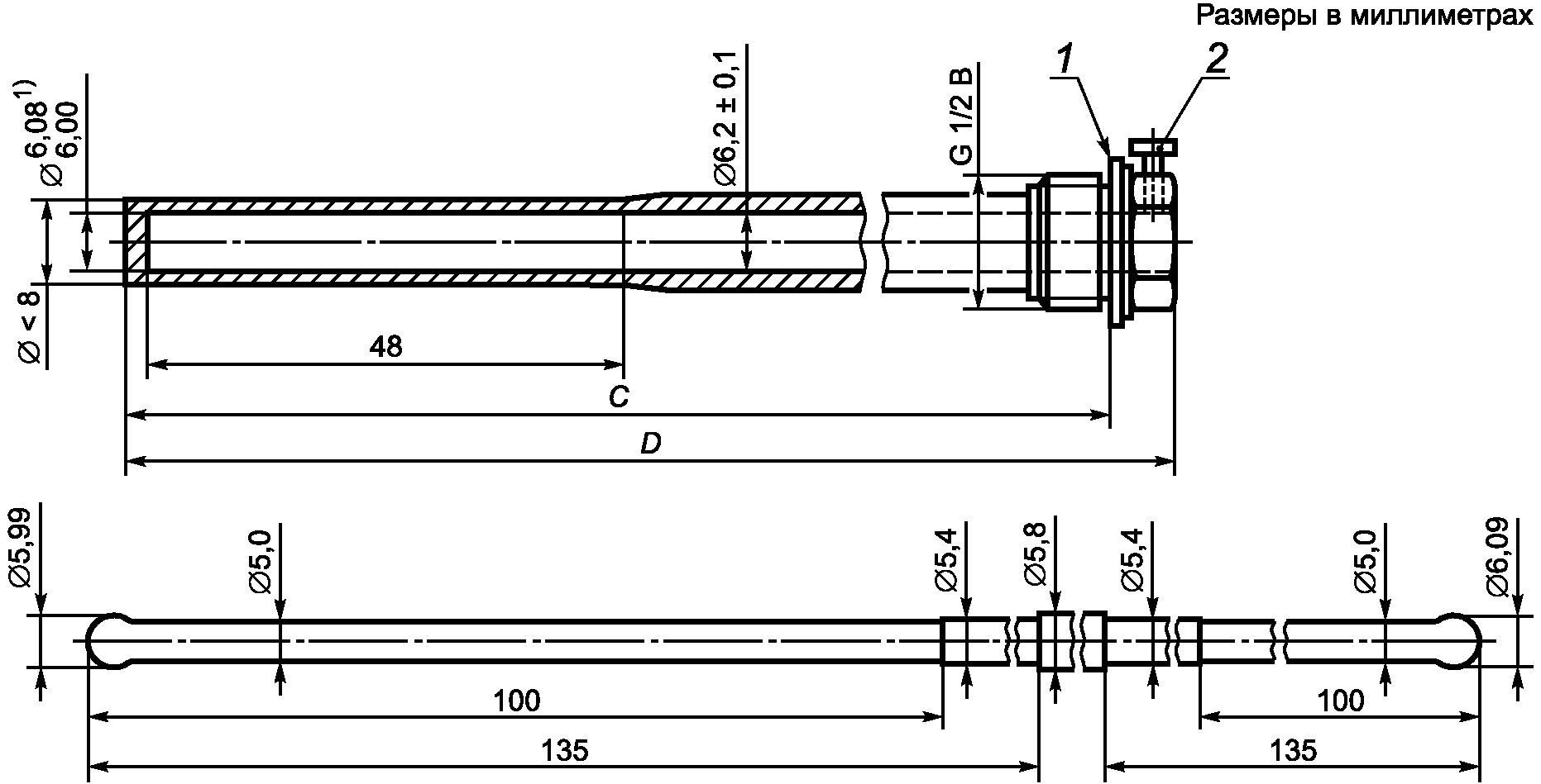 Маркировка "ЕН 1434" подтверждает, что минимально допустимый внутренний диаметр соответствует датчику согласно требованиям настоящего стандарта. В случае если маркировка отсутствует, для измерения необходимого внутреннего диаметра следует использовать прибор, представленный на рисунке C.1: