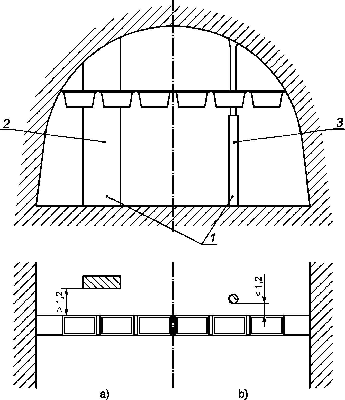 Примечание - Расстояние в свету между соседними группами сосудов не превышает 30 м (или 50 м при поперечном сечении выработки менее 10 м2).