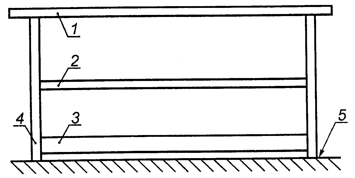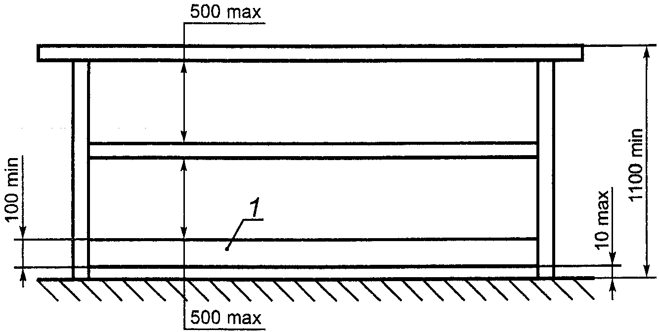 7.2.5. Перила должны включать по крайней мере одно ограждение для коленей или любое другое аналогичное устройство. Расстояние в свету между поручнем и ограждением для коленей, а также между ограждением для коленей и боковым каркасом не должно превышать 500 мм (см. рисунок 6).