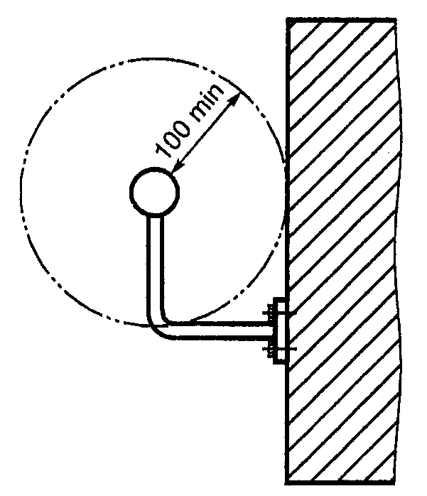 7.2.6. Вдоль поручней не должно быть никаких препятствий на расстоянии 100 мм, кроме обратной стороны поручней для установки опорных стоек (см. рисунок 8).