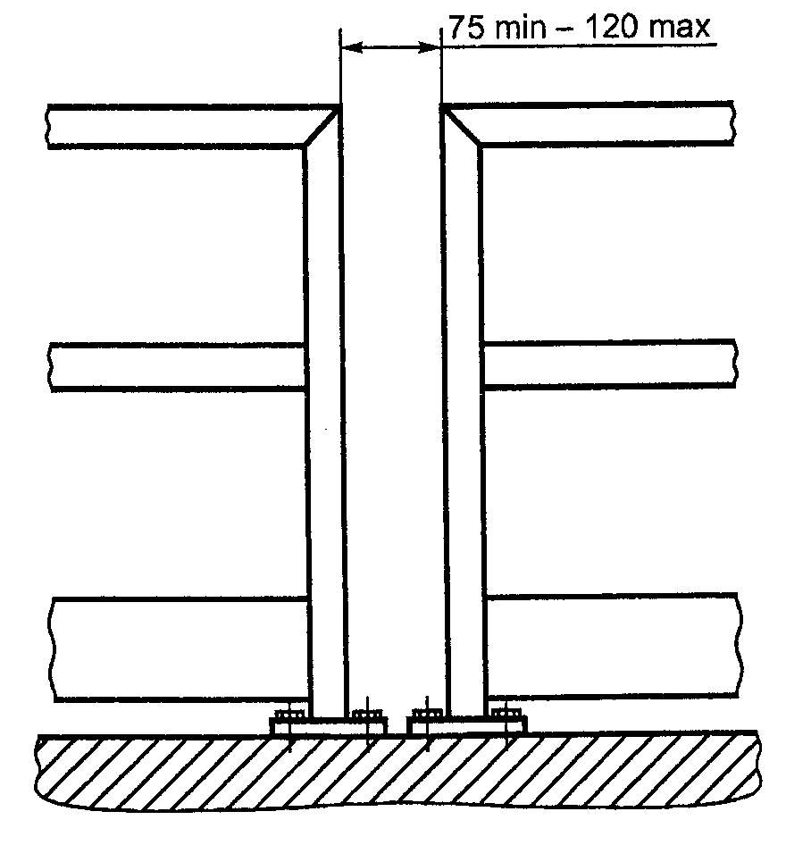 7.1.8. Расстояние между осями стоек должно быть не более 1500 мм. Если это расстояние превышено, прочность крепления стойки и крепежных устройств должна быть увеличена.