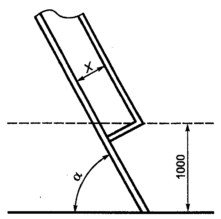 7.2.4. Поручни для лестниц с углом наклона от 60° до 75° должны начинаться на расстоянии не более 1000 мм от основания лестницы по вертикали. Числовые значения X (расстояния от осевой линии на лестнице до центральной линии поручней, см.
