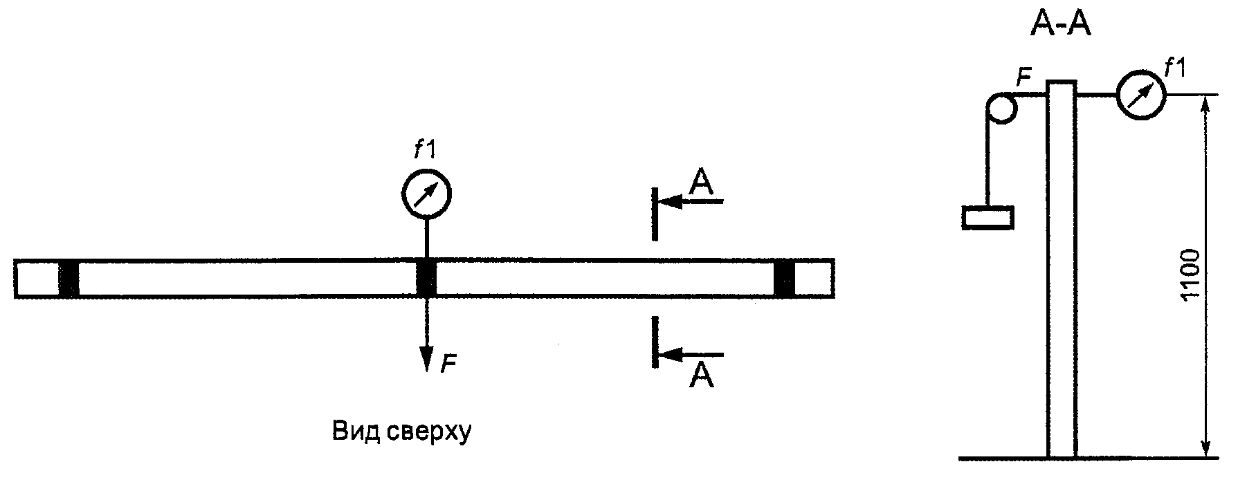 Нагрузку F следует прилагать, как показано на рисунке 10, в течение 1 мин.