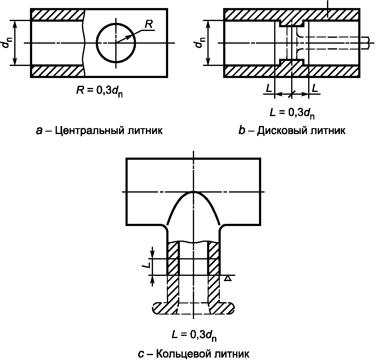 L в цилиндрической части зоны литника, указанной в стандарте на изделие или другом документе, при отсутствии указаний - на расстоянии