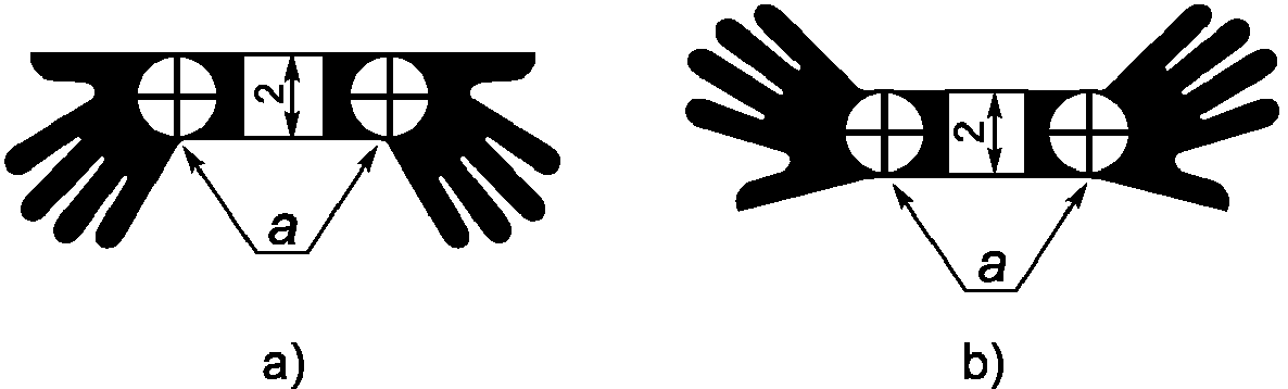 рисунке D.10, дают представление о стиле изображения, который используется в иллюстрациях для визуального восприятия опасности. Изображая очертания кисти за счет использования уже существующих иллюстраций, изменяя, если необходимо, расположение пальцев кисти, можно сократить критически важное время для распознавания опасности. Ситуации, которые требуют различных движений пальцами, могут быть воспроизведены путем приближения изображения кисти к желаемой позиции и видоизменению этой позиции. Необходимо уделять внимание изображению пальца. Пальцы не должны иметь конусную форму, хотя могут приближаться к ней. Комбинация пальцев располагается в четверти круга. Для вида сбоку используются три пальца и большой палец.