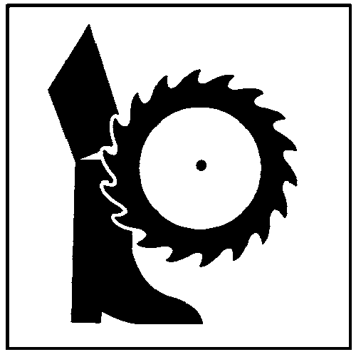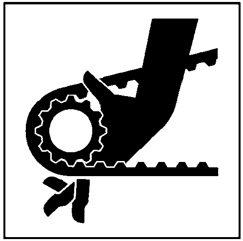 Как правило, используют контурное изображение машины в целом или основных ее узлов. Это позволяет избежать большого заполнения (черным цветом) площадей, что может отвлечь внимание от распознавания человеческой фигуры на фоне потенциально опасных узлов или оборудования машины, особенно значимых, когда фигура расположена рядом с машиной. Изображение отдельных узлов машины может быть контурным или заполненным в зависимости от необходимости особого визуального распознавания и графической четкости. Как правило, заполнение площадей требуется для восприятия больших масс и компактности; вместе с тем контурное изображение часто связано с необходимостью детального графического изображения реальных узлов машины и более четкого восприятия природы опасности. Небольшие заполненные площади или контурные изображения в жирных линиях могут помочь выделению опасных деталей или оборудования на машине.