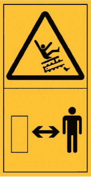 Наиболее драматичное изображение несчастного случая при попадании в зону опасности ступни или нижней части ног может быть достигнуто при показе всей человеческой фигуры. Использование ног в изображении человеческой фигуры повышает осознание важности элементов нижних конечностей в данной опасной ситуации. Для иллюстрации, представленной на