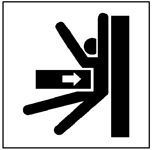 рисунке D.23 приведены примеры иллюстраций опасности, в которых используются стрелки, обозначающие давление или силу. Размеры в условных единицах (клетках) см. в
