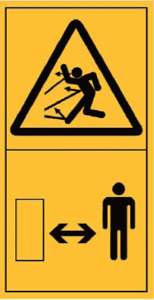 3.12 табличка безопасности (machine safety label): Табличка на машине, которая информирует наблюдателя об одной или нескольких потенциальных опасностях и рекомендует меры безопасности и/или действия, требуемые для того, чтобы избежать эту(и) опасность(и).